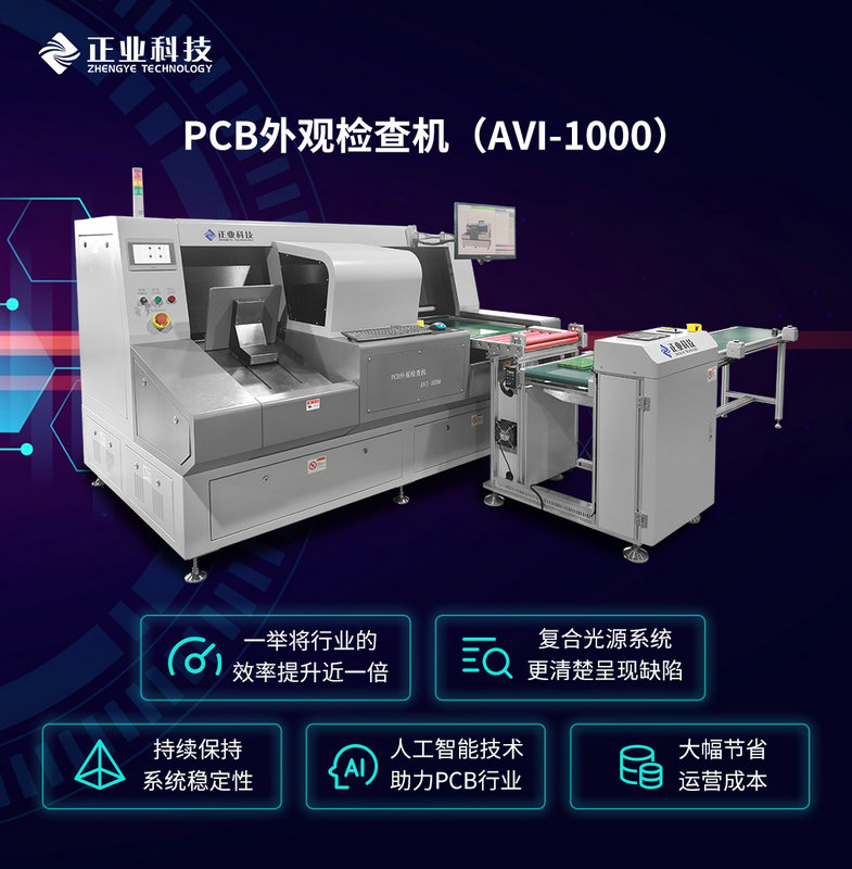 正業(yè)科技AVI-1000系列PCB外觀檢查機(jī),檢測能力尤其出眾,適用于PCB出廠前的外觀檢查,對其缺陷、瑕疵進(jìn)行檢測,自動上料,出料自動水平堆疊,自動運(yùn)輸?shù)?/span>VRS工位。